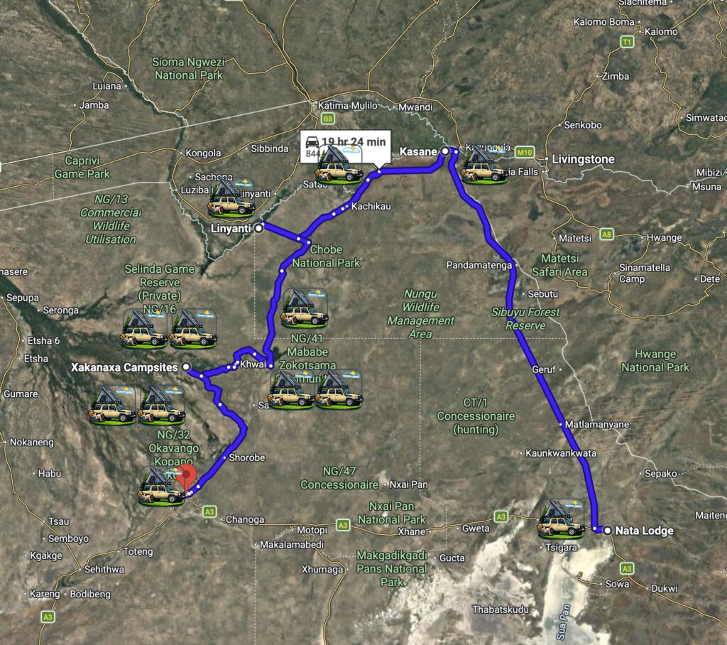 The Chobe river drive, Linyanti and Savuti camp in the Chobe, Kwai camp in the Moremi and Third bridge in the Moremi. Finally ending in Maun. If it sounds good, you are right.